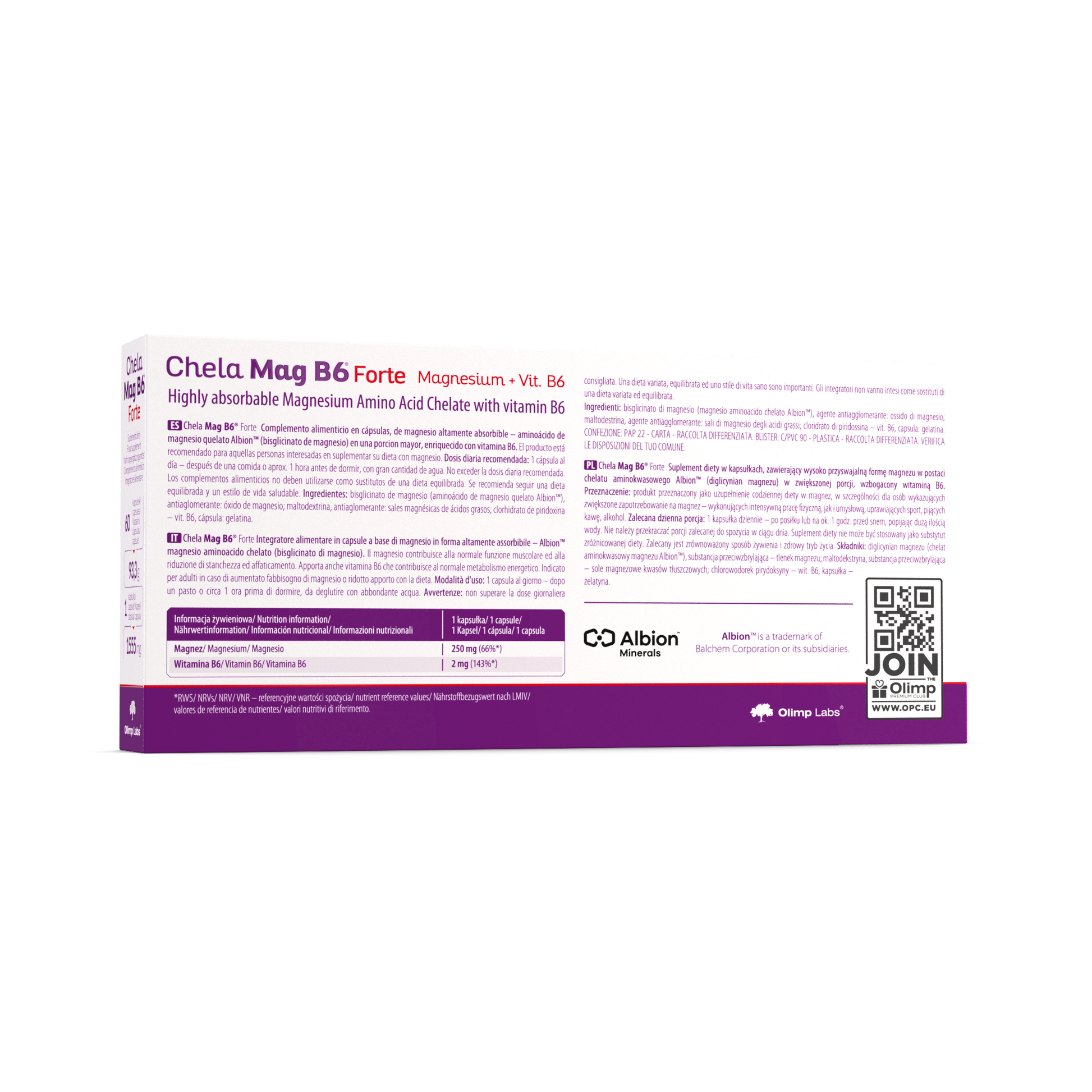 Food supplement in capsules, containing highly absorbable form of magnesium – Albion™ magnesium amino acid chelate (magnesium bisglycinate) in an increased portion, enriched with vitamin B6. The product is recommended for those who want to supplement their diet with magnesium.